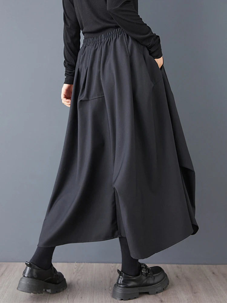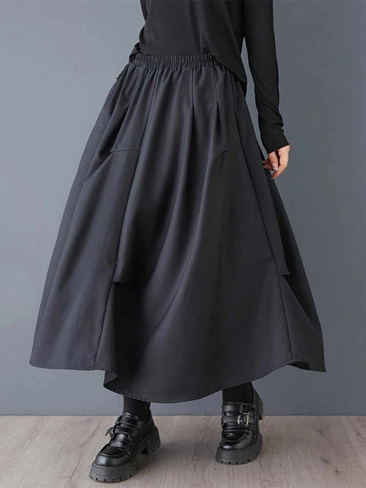 XITAO A-line Casual Solid Color Mid-calf Women Skirt Irregular Loose Thin Fashion Elastic Waist Fold Autumn Female Skirt GMM1026