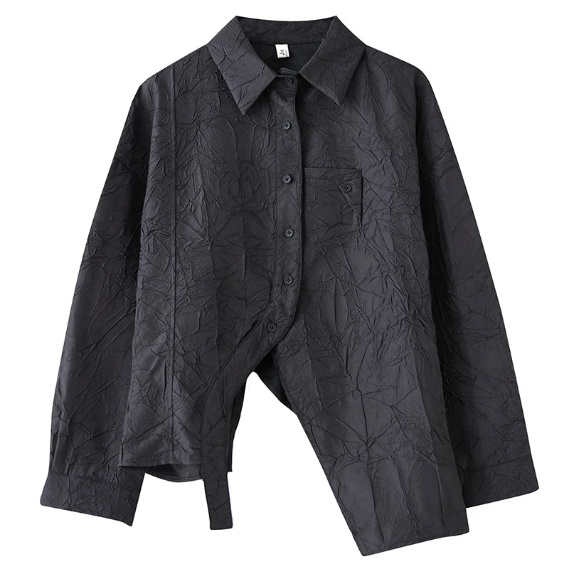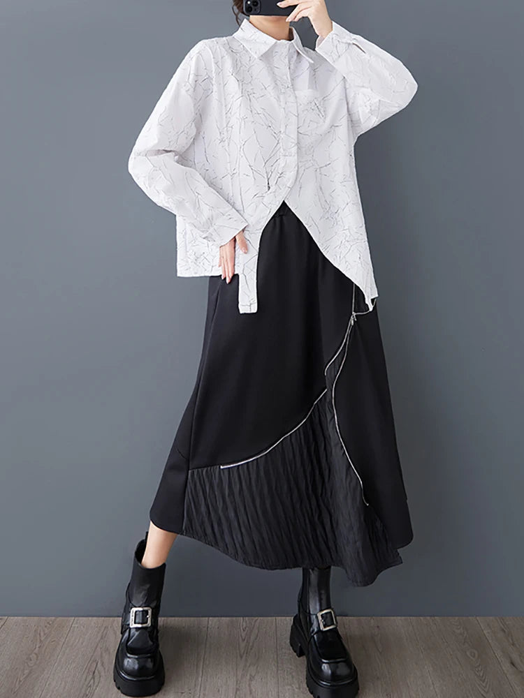 XITAO Asymmetrical Patchwork Single Breasted Women Shirt Solid Color Turn-down Collar Long Sleeve Slimming Top Spring GMM1203