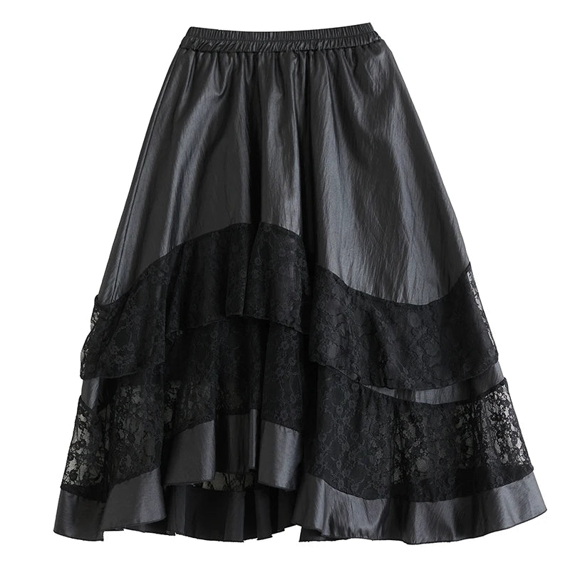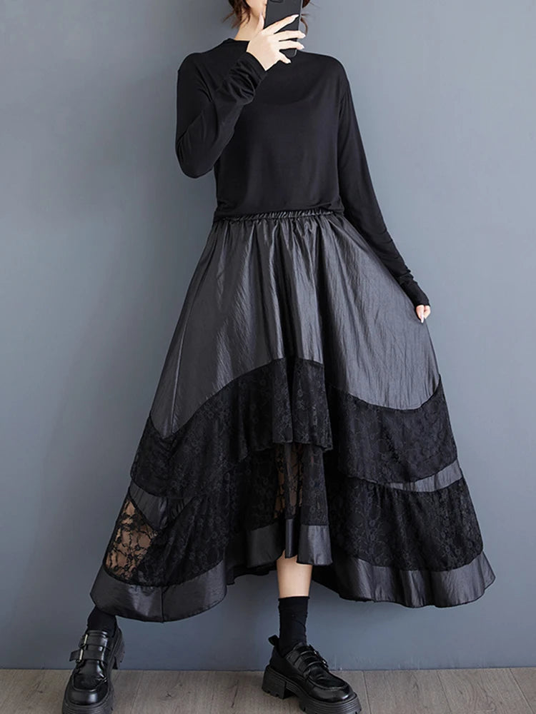 XITAO Casual Loose Fit A-line Solid Color Ankle-length Skirt Patchwork Elastic Waist Irregular Hong Kong Women Skirt GMM1062