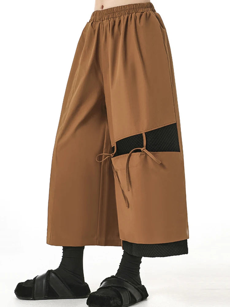 XITAO Irregular Patchwork Ankle Length Pants Pleated Elastic Waist Personality Street All-match Women Wide Leg Pants DMJ3797