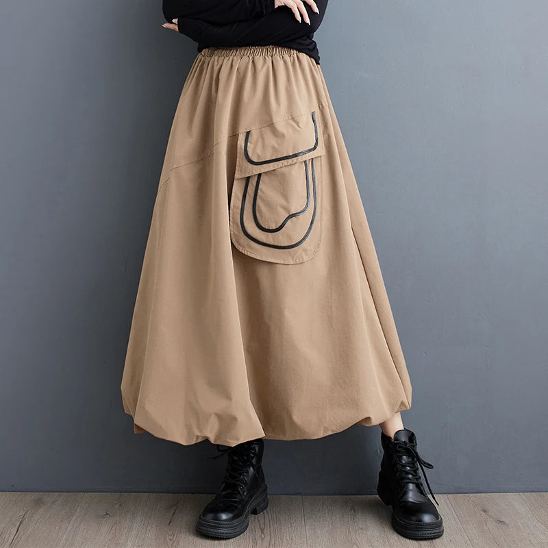 XITAO Loose Solid Color A-line Casual Ankle-length Ball Gown Elastic Waist New Arrival Flower Pocket Autumn Female Skirt GMM1045