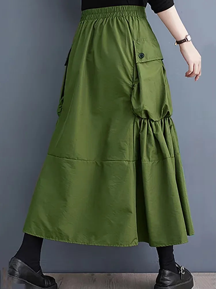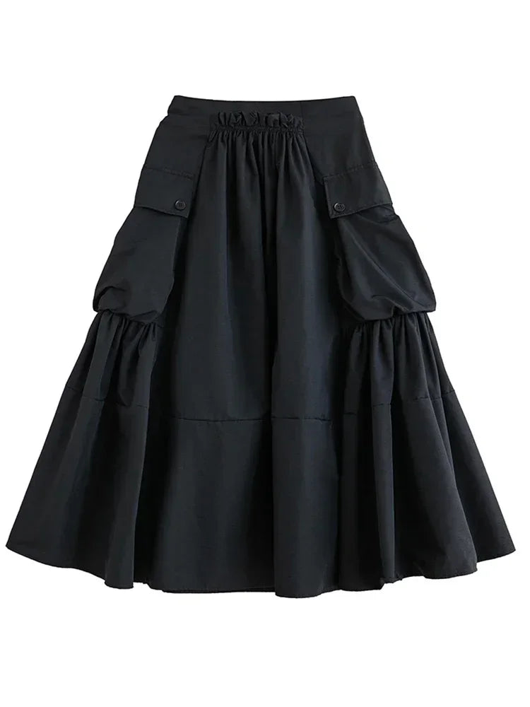 XITAO Personality Folds Patchwork Pocket Skirt Solid Color All-match Women Spring New Arrival Trend Street Wind Skirt LYD1228