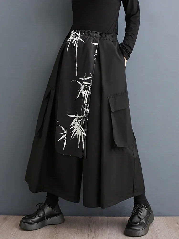 XITAO Print Elastic Waist Patchwork Women Pants Solid Color Loose High Waisted Wide Leg Pants Winter Fashion New All Match HQQ2088