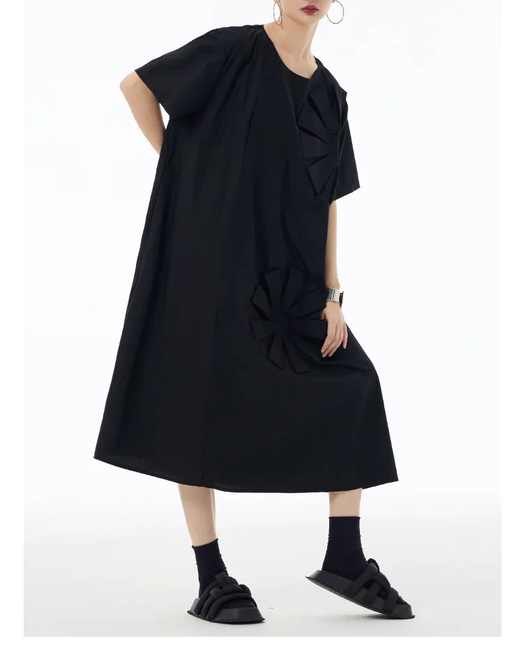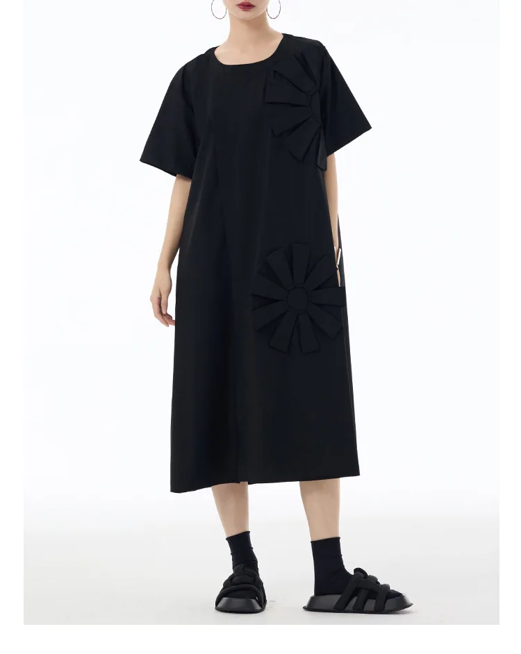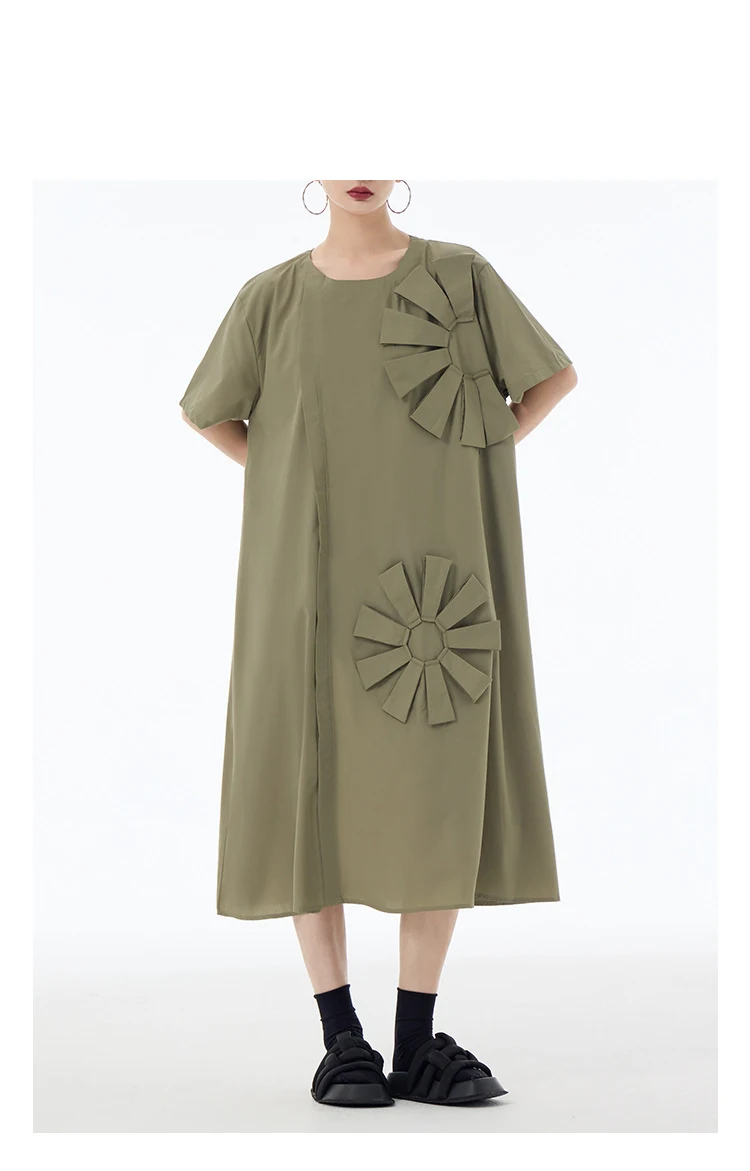 XITAO Simplicity Casual Loose Dress Solid Color Fashion Three-dimensional Flower Splicing Decorate Women New Dress WLD20228