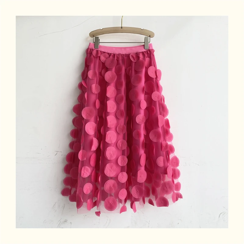 XITAO Solid Color Casual Skirt Geometric Circular Three-dimensional Decorative Loose Slimming Fashion A-line Skirt DMJ4086