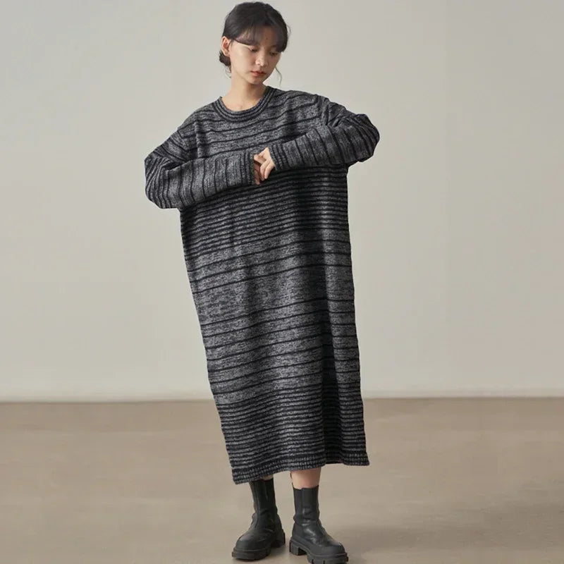 XITAO Striped Knitting O-neck Dress Full Sleeve Loose Casual Pullover Contrast Color Spring Women New All-match Dress DMJ3280