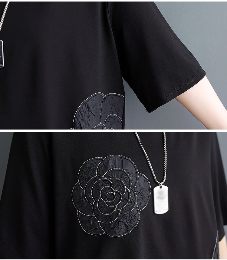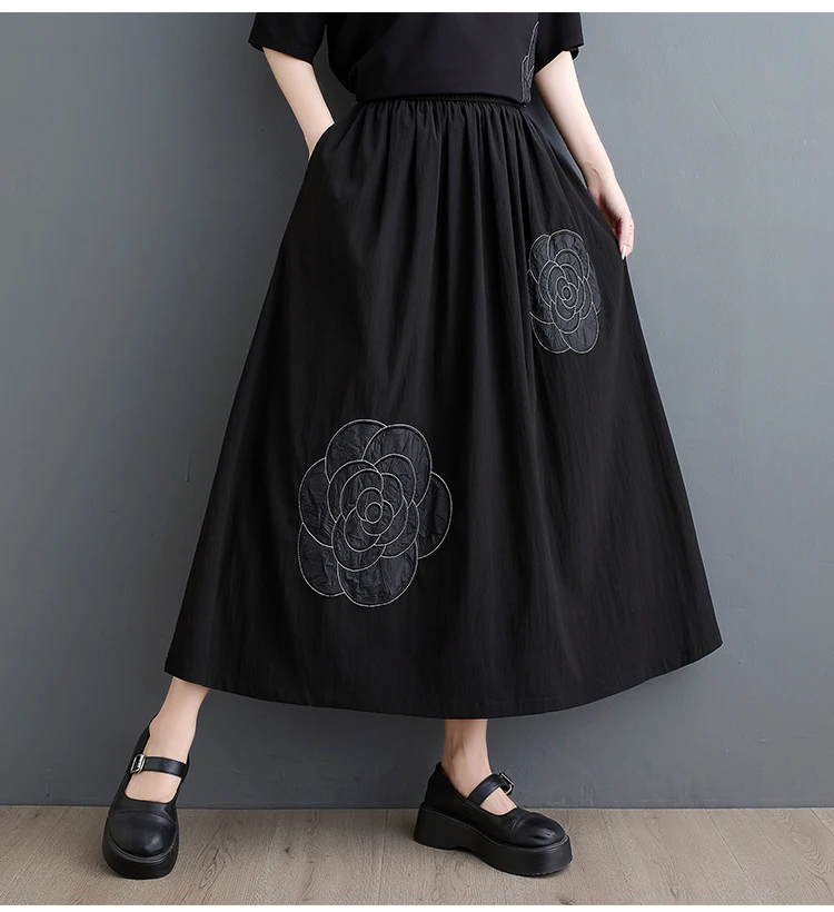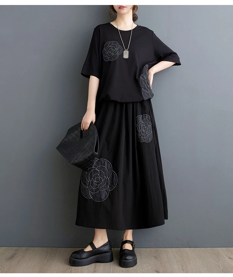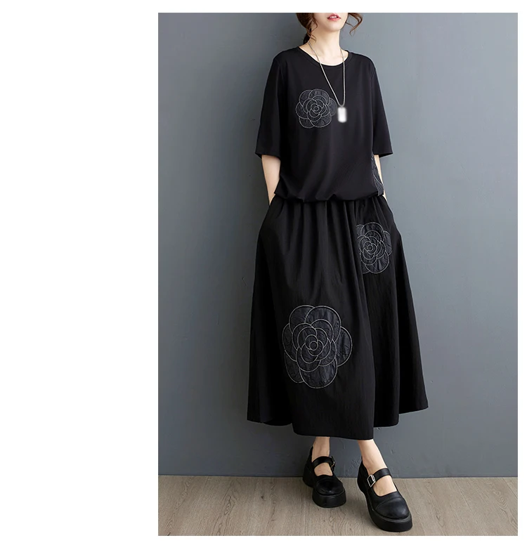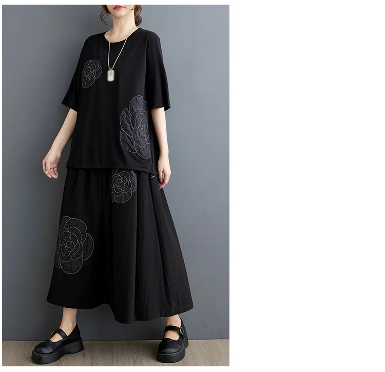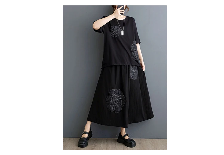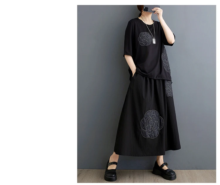 XITAO Vintage Loose Embroidery Two Piece Set Fashion Floret Patchwork Top Women Summer New Casual Temperament Skirt ZY8744