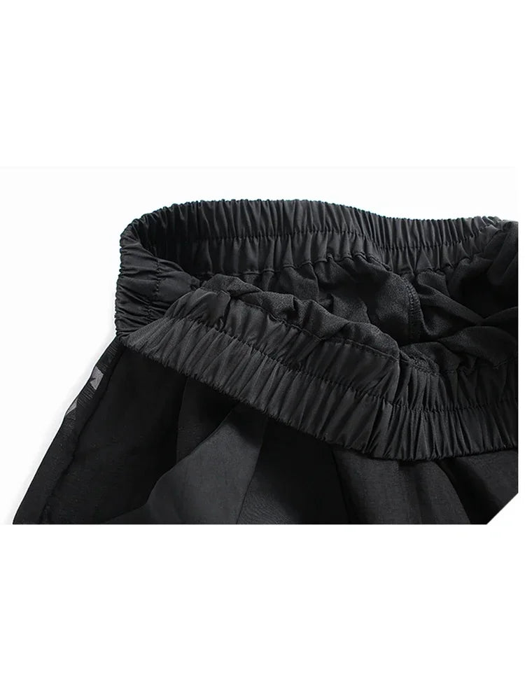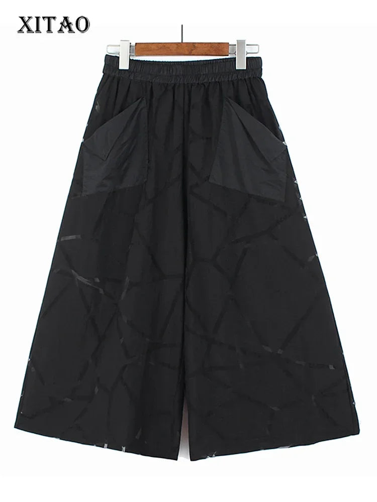 XITAO Women Pants Pocket Patchwork Small Fresh Elastic Waist White Black 2024 Summer Minority Elegant Wide Leg Pants WLD7134
