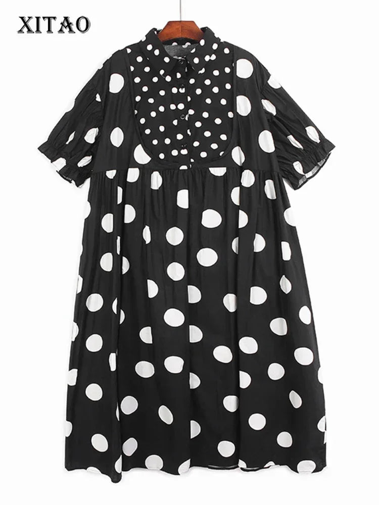 XITAO Women Pot Dress Patchwork Pleated Goddess Fan Casual Style Loose Summer Minority Pullover New Dress Top ZRQ1012